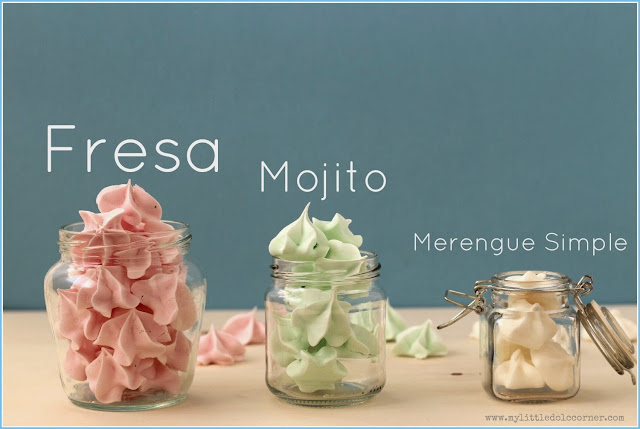Truco 3: Si os fijáis en las fotos, los picos de los merengues blancos tienen una forma más redondeada que los de fresa o mojito. El motivo es que ese merengue estaba montado un poco menos firme. Así que dependiendo de la forma que os guste más deberéis montar picos muy, muy firmes o un poquito menos.