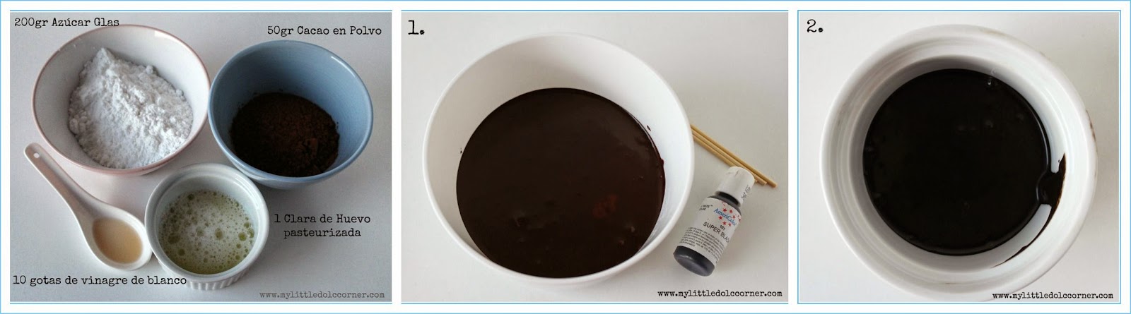 1. Preparar al Glasa ; ) para ello sólo tenéis que seguir el tutorial fantástico que preparé (es que ya no me quedan abuelos : ( ) sobre Cómo preparar Glasa Perfecta para decorar paso a paso.